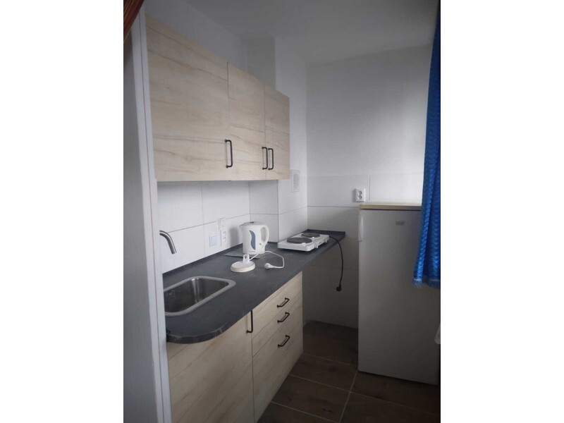 Domybyty.com Vám exkluzivně nabízejí k pronájmu bytovou jednotku o dispozici 1+kk se zasklenou lodžií v ul. Grusova – Polabiny, Pardubice. Byt se nachází v 5.NP panelového domu s výtahem a má tuto dispozici: předsíň, koupelna se sprchovým koutem + wc (zděné jádro), obývací pokoj s kuchyňským koutem + zasklená lodžie. Cena nájmu činí 10.200,–Kč + energie 2.800,–Kč vč. elektřiny, jistota 13.000,–Kč, rezervační poplatek realitní kanceláři 10.200,–Kč. Byt se pronajímá částečně zařízený (2 křesla, konferenční stolek, postel, dva taburety, pračka, lednice, komoda a skříň v předsíni). Pronájem je vhodný pro jednu osobu bez domácích mazlíčků, volné ihned, energetická náročnost budovy D